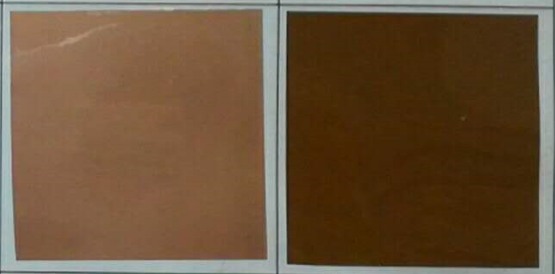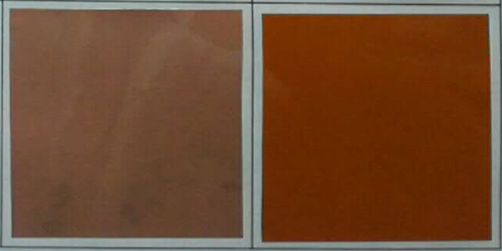 (2)單面有膠壓延銅。銅的延伸率相對無膠銅差一些。僅從外觀圖面看沒太大的區(qū)別,這個只能靠實物辨別??傮w偏黃色。
